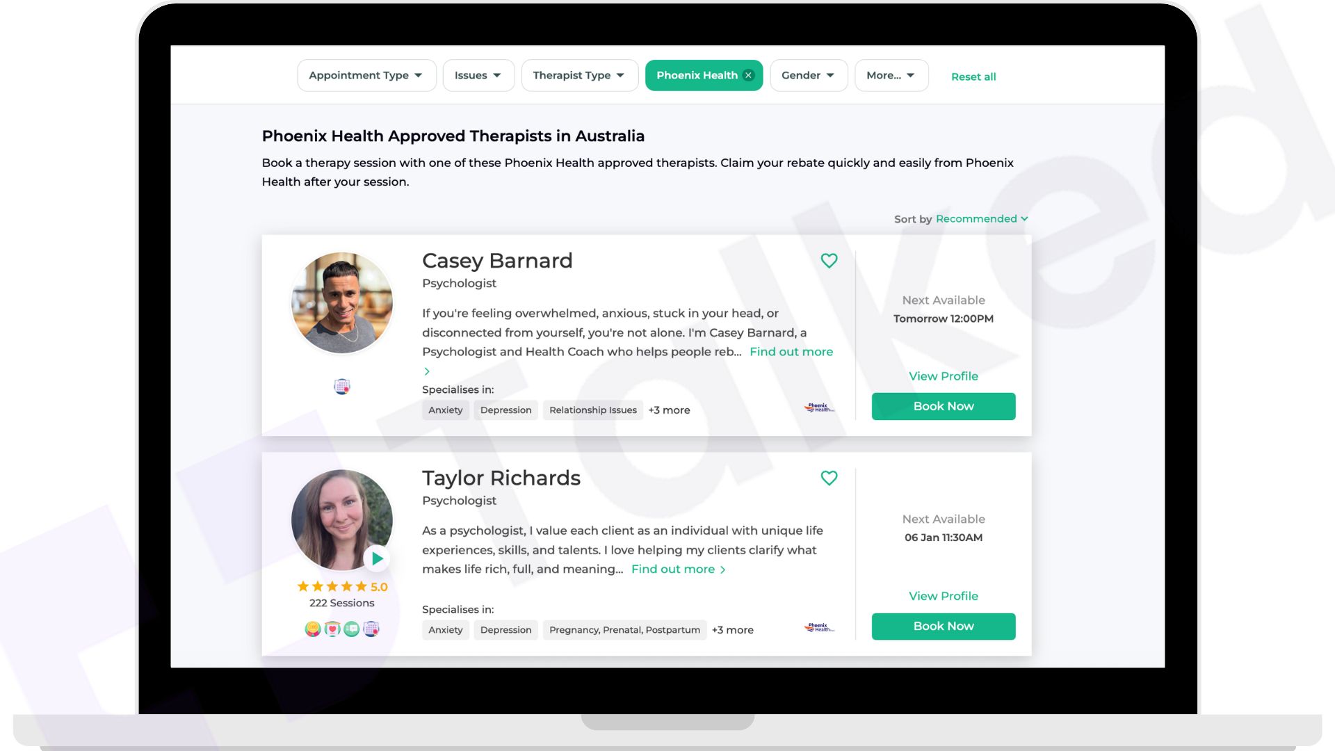Appointments with counsellors, provisional psychologists, or other coaches and therapists are often not claimable through Phoenix Health Extras. So to make things easier, it’s much better to go to a clinic or platform like Talked, where all psychologists are AHPRA-registered.