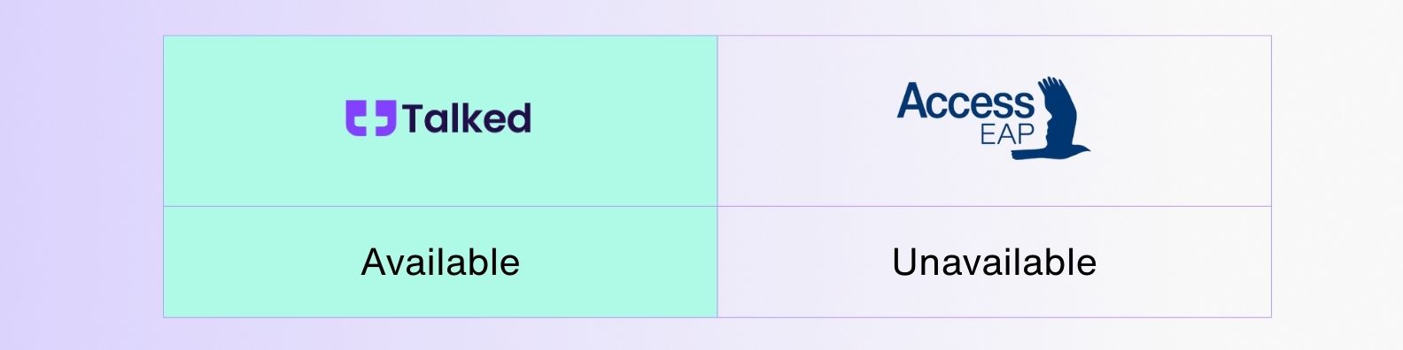 There’s no one-size-fits-all solution when it comes to supporting your team’s mental health. Both Talked for Work and Access EAP offer meaningful support, but they do so in very different ways.