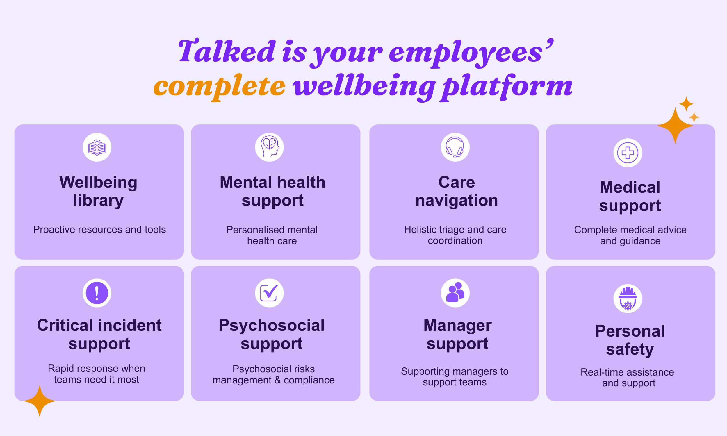Beyond just counselling - Talked integrates GP access, medical advice, and psychosocial and personal safety tools, helping organisations offer more holistic wellbeing support, not just a tick-box EAP.