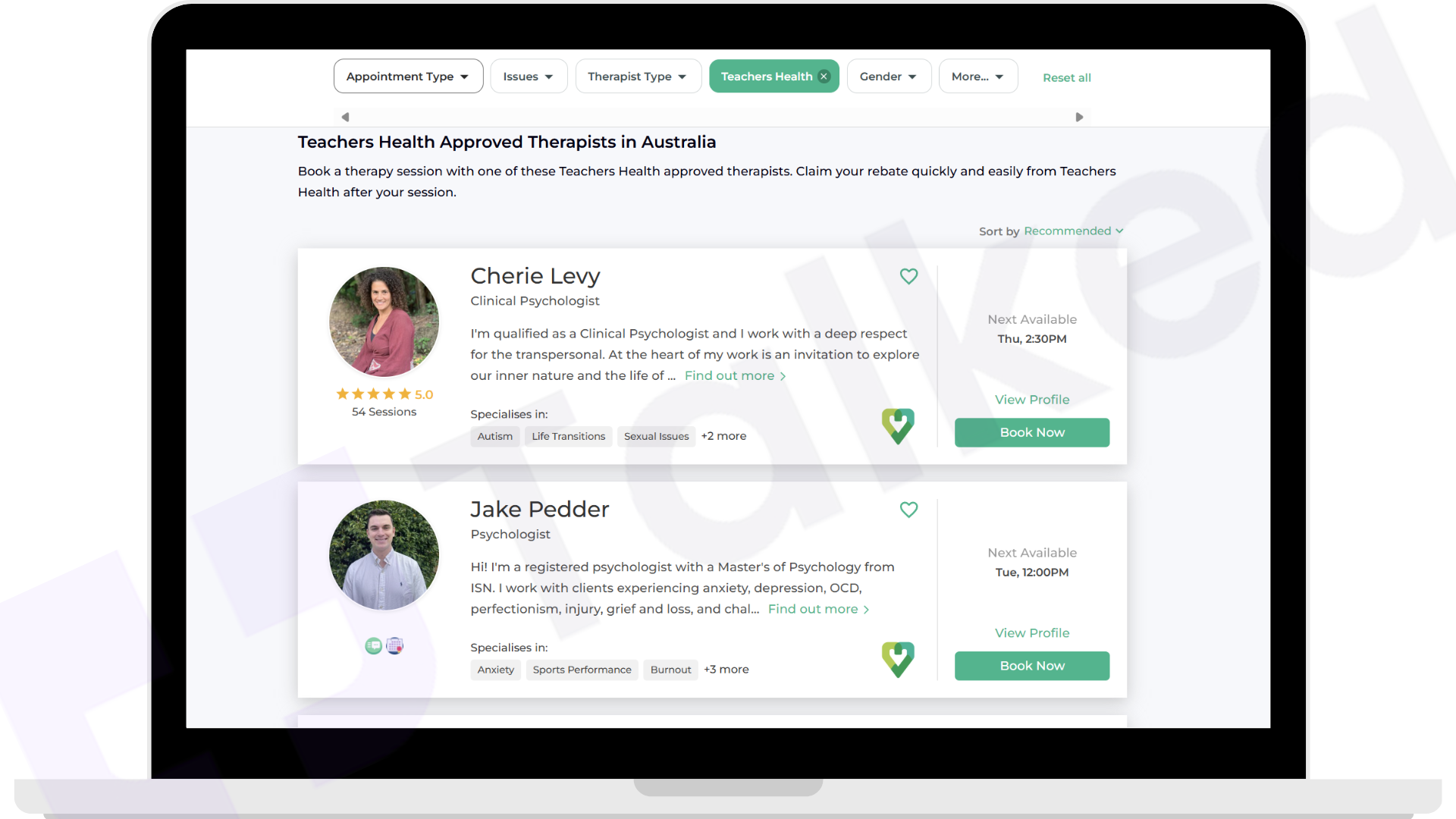 Alternatively, if you book via a platform like Talked and the psychologist is AHPRA-registered and recognised by Teachers Health, the treatment should be eligible for a rebate under your Extras policy. Find a Teachers Health psychologist on Talked today